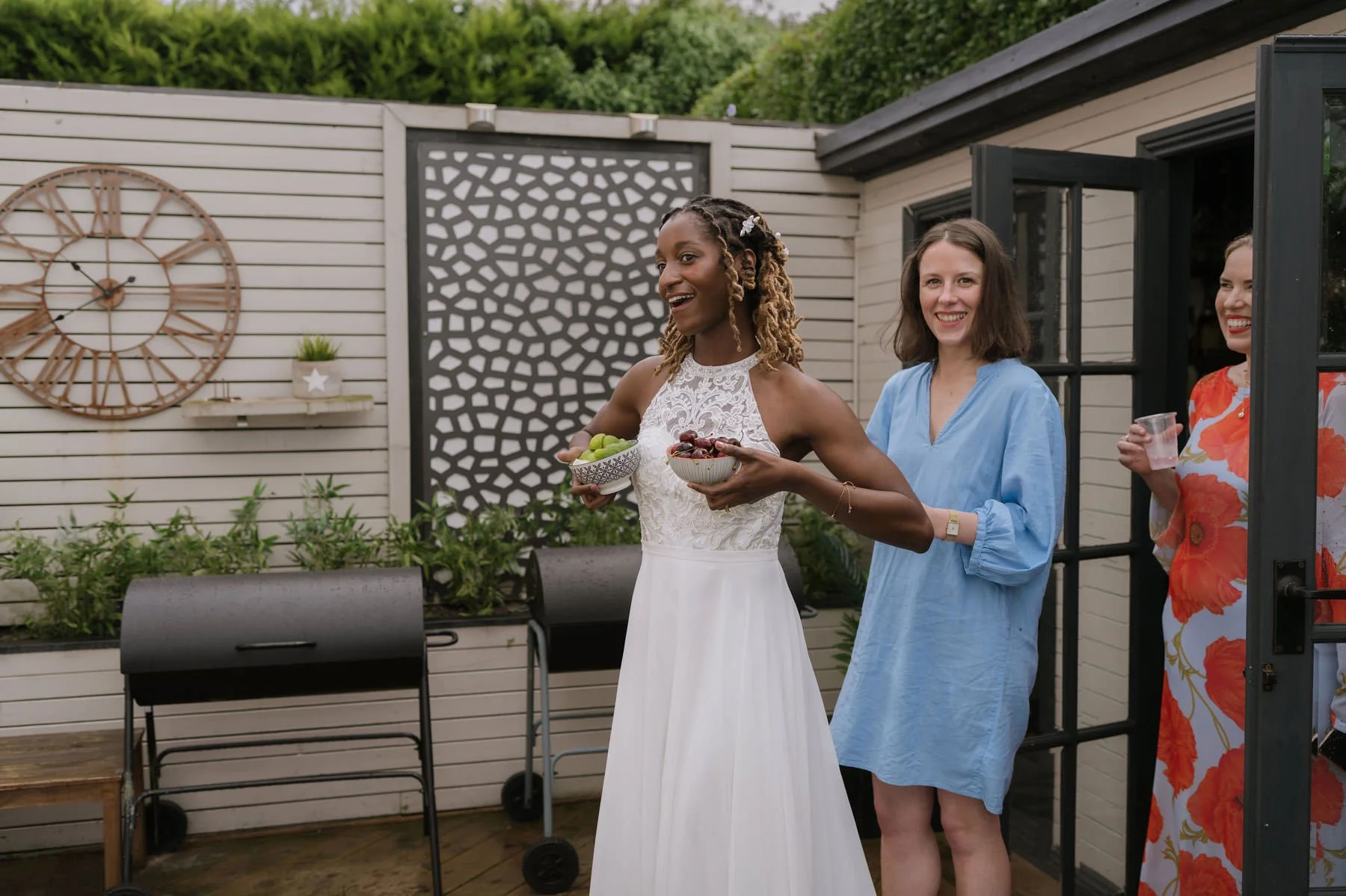 Later, they invited everyone back to their home for an intimate, laid-back reception, complete with garden games, bubbly toasts, and the most delicious barbecue feast. Even when the classic British rain made a brief appearance, it only added to the charm and laughter.