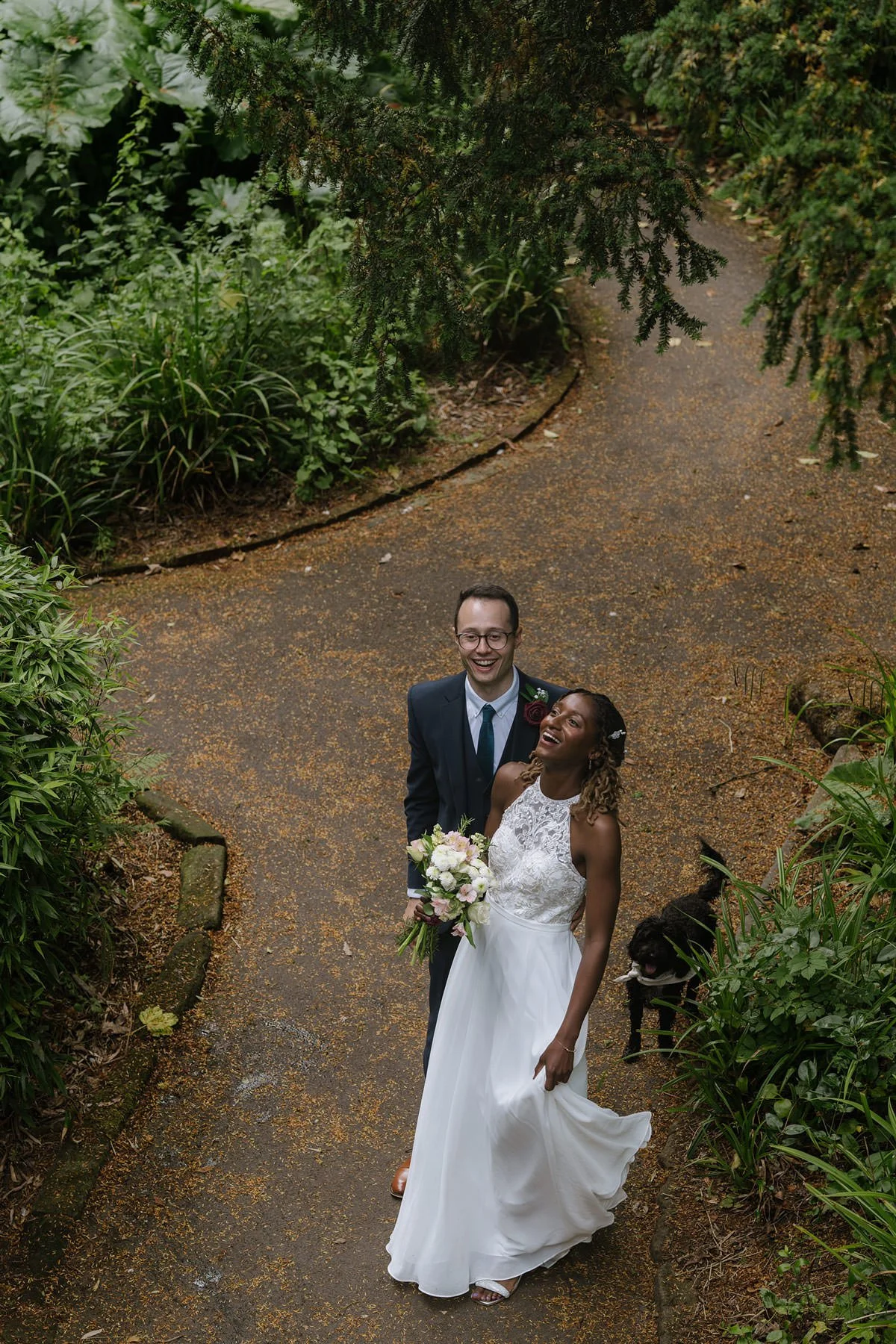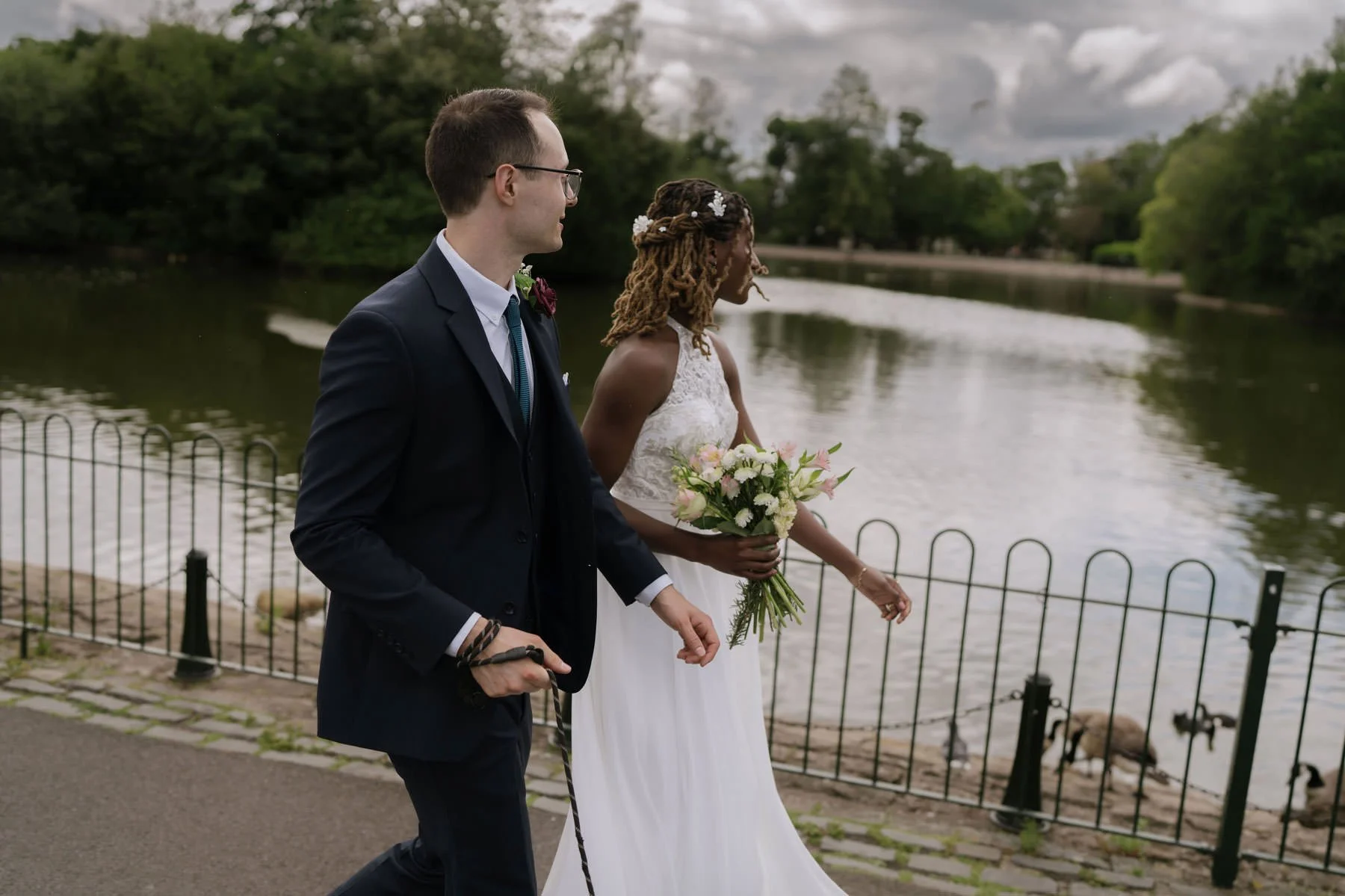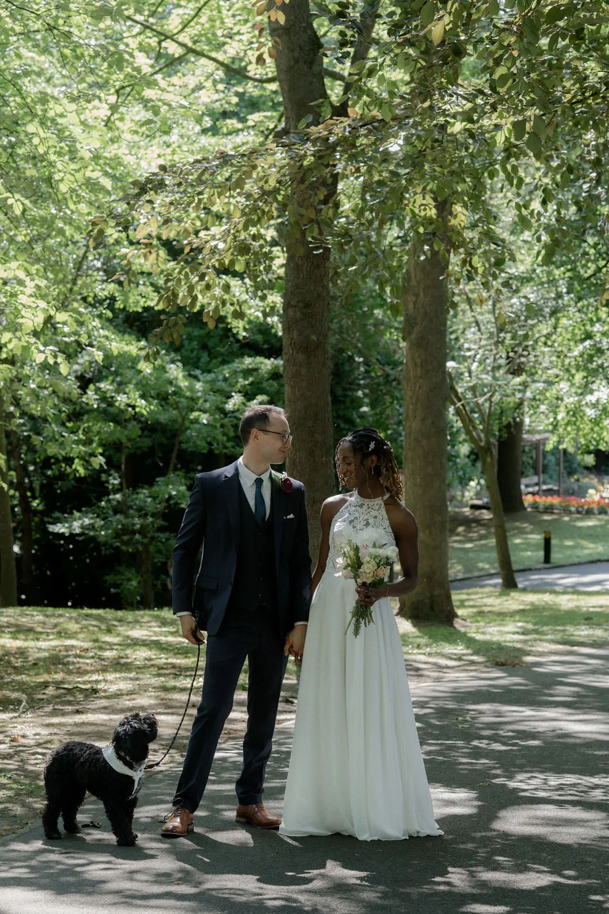 After the ceremony, we headed over to stunning Saltwell Park for some timeless wedding portraits. Saltwell Park is one of my favourite spots for wedding photos in Gateshead — it offers so many beautiful, natural backdrops, and on this day, we were gifted with glorious sunshine (a true rarity in the UK!). Their sweet dog joined us too, adding an extra layer of personality and fun to their wedding gallery.